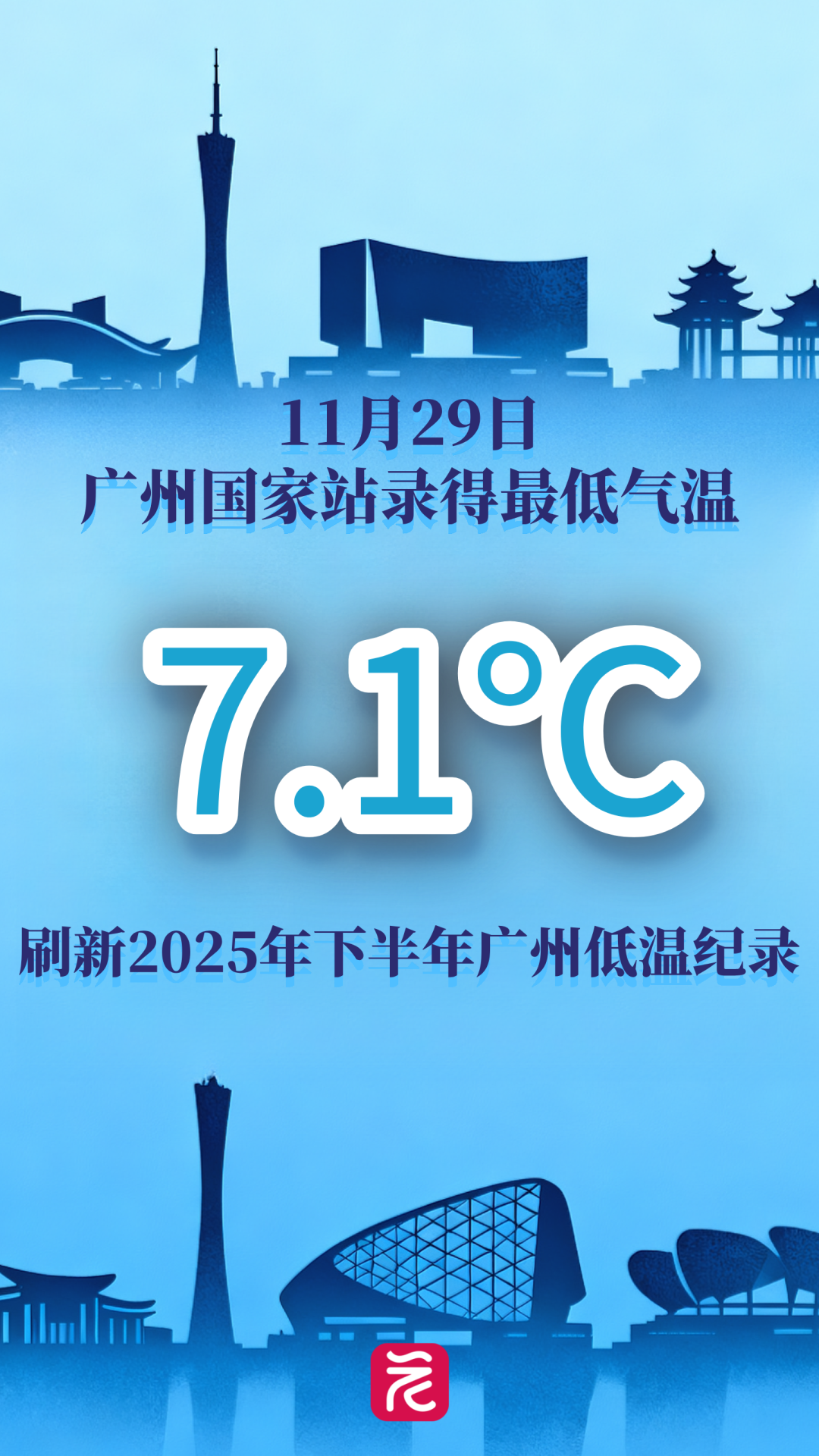 今晨广州国家站(59287)录得最低气温7.1℃