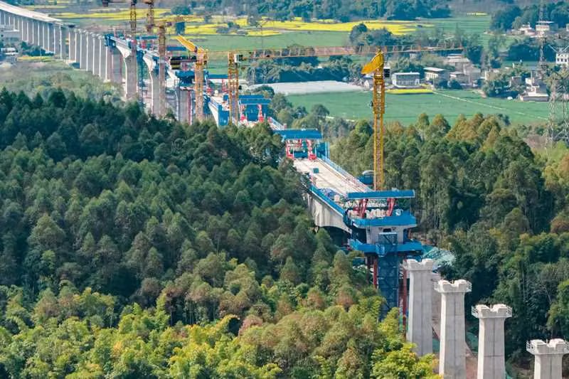 成眉轨道公司建设事业部土建管理人员闵杰介绍:“成眉线成都段13公里多高架,施工难度较大。”